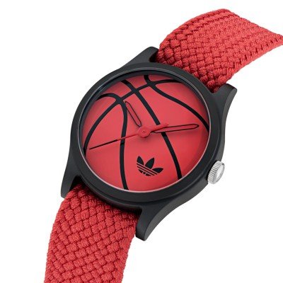 This Adidas watch has a case made of Resin with a diameter of 39 mm and is fitted with a textile band. Inside the case lies a Timex movement and the watch features a Acrylic crystal.