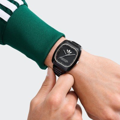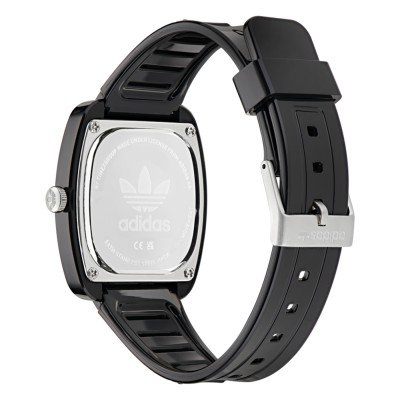 This Adidas watch has a case made of BioCeramic with a diameter of 37 mm and is fitted with a Bio-sourced resin band. Inside the case lies a Timex movement and the watch features a Mineral crystal.