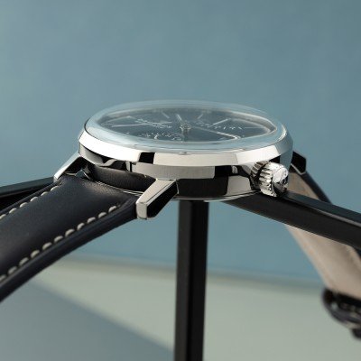 This Bauhaus watch has a case made of stainless steel with a diameter of 41 mm and is fitted with a leather band. Inside the case lies a Miyota movement and the watch features a K1 Mineral crystal.