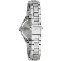 This Bulova watch has a case made of stainless steel with a diameter of 28 mm and is fitted with a stainless steel band. Inside the case lies a Miyota movement and the watch features a Sapphire crystal.