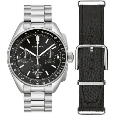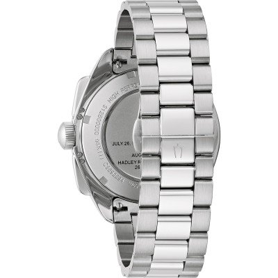 This Bulova watch has a case made of stainless steel with a diameter of 43.5 mm and is fitted with a stainless steel band. Inside the case lies a Miyota movement and the watch features a Sapphire crystal.
