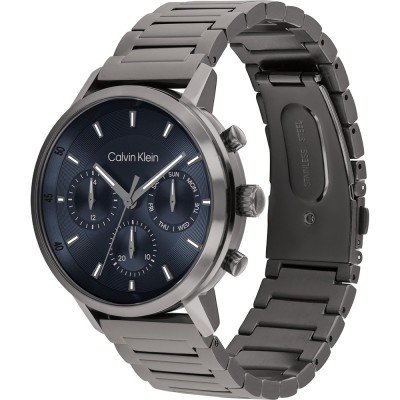 This Calvin Klein watch has a case made of stainless steel with a diameter of 42 mm and is fitted with a stainless steel band. Inside the case lies a Ronda movement and the watch features a Mineral crystal.