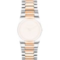 This Calvin Klein watch strap is made of stainless steel and is attached to the watch by means of steel pins. The band has a width of 20 mm and is closed by means of a deployment clasp with push buttons. The strap has no straight mount which means that this strap is only suitable for the watches listed below.