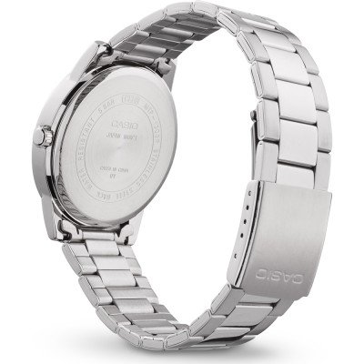 This Casio watch has a case made of metal alloy with a diameter of 40 mm and is fitted with a stainless steel band. Inside the case lies a Casio movement and the watch features a Mineral crystal.