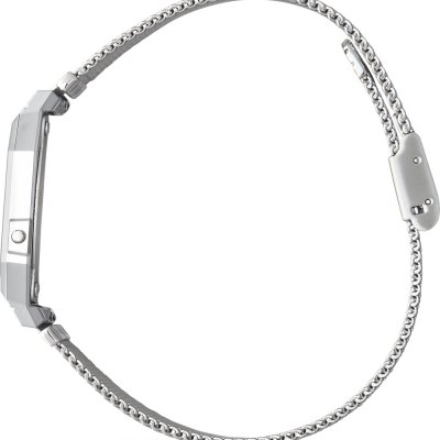 This Casio watch has a case made of plastic / resin with a diameter of 32.8 mm and is fitted with a stainless steel band. Inside the case lies a Casio movement and the watch features a Acrylic crystal.