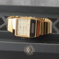 This Casio watch has a case made of plastic / resin with a diameter of 32.1 mm and is fitted with a stainless steel band. Inside the case lies a Casio movement and the watch features a Acrylic crystal.