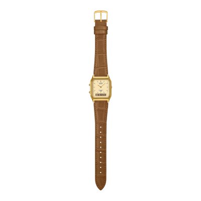 This Casio watch has a case made of Resin with a diameter of 29.8 mm and is fitted with a leather band. Inside the case lies a Casio movement and the watch features a Acrylic crystal.