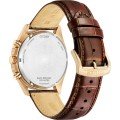 This Citizen watch has a case made of stainless steel with a diameter of 41 mm and is fitted with a leather band. Inside the case lies a Citizen movement and the watch features a Mineral crystal.