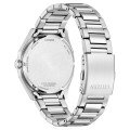 This Citizen watch has a case made of stainless steel with a diameter of 41 mm and is fitted with a stainless steel band. Inside the case lies a Citizen movement and the watch features a Mineral crystal.