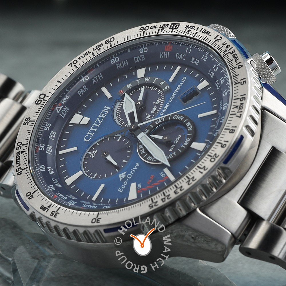 This Citizen watch has a case made of stainless steel with a diameter of 47 mm and is fitted with a stainless steel band. Inside the case lies a Citizen movement and the watch features a Sapphire crystal.