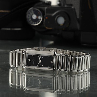 This Claude Bernard watch has a case made of stainless steel with a diameter of 19 mm and is fitted with a stainless steel band. Inside the case lies a Ronda movement and the watch features a Mineral crystal.
