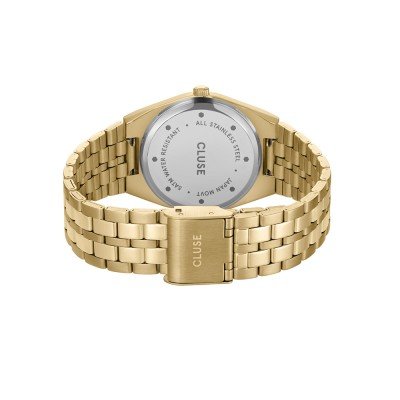 This Cluse watch has a case made of stainless steel with a diameter of 33 mm and is fitted with a stainless steel band. Inside the case lies a Seiko movement and the watch features a Mineral crystal.
