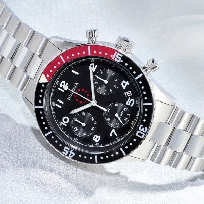 Dieser hochpräzise Taucherchronograph ist eine Sonderedition zu Ehren des 150-jährigen Jubiläums der Marine Star Kollektion von Bulova. Das Design wurde von den ikonischen Designs aus den 1970er Jahren inspiriert, mit einem gewölbten Saphirglas, dem alten Marine Star-Logo auf dem schwarzen Zifferblatt und einem Gehäuseboden mit dem ursprünglichen Ankerdesign. Als voll funktionsfähige Taucheruhr ist diese Marine Star natürlich 20 ATM wasserdicht und verfügt über eine Lünette mit Zeiteinstellung und eine verschraubte Krone. Diese Sammleruhr wird von Bulovas firmeneigenem Precisionist-Uhrwerk angetrieben, das mit einer Frequenz von 262 kHz für unvergleichliche Genauigkeit sorgt und über Register verfügt, die eine Zeitmessung auf 1/20 Sekunde ermöglichen. Die Uhr wird in einer hochwertigen Verpackung mit einem Buch geliefert, das die reiche Geschichte der Marke erzählt.
