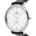 Diese Daniel Wellington Uhr hat ein Edelstahl Gehäuse mit einem Durchmesser von 40 mm und ist mit einem Armband aus Leder versehen.