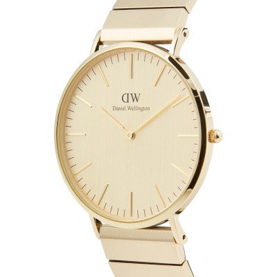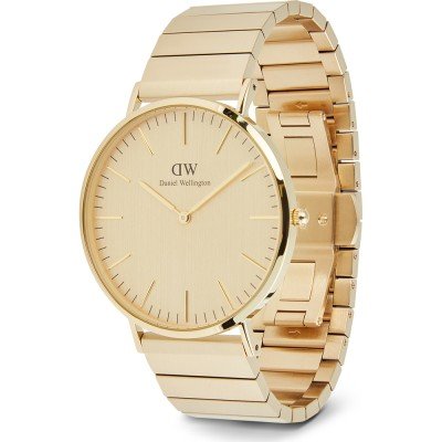 Diese Daniel Wellington Uhr hat ein Edelstahl Gehäuse mit einem Durchmesser von 40 mm und ist mit einem Armband aus Edelstahl versehen.