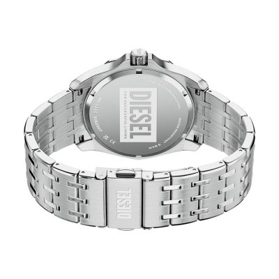 Diese Diesel Uhr hat ein Edelstahl Gehäuse mit einem Durchmesser von 44 mm und ist mit einem Armband aus Edelstahl versehen. In der Uhr arbeitet ein Miyota Uhrwerk. Das Glas der Uhr besteht aus Mineral - Glas.