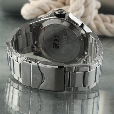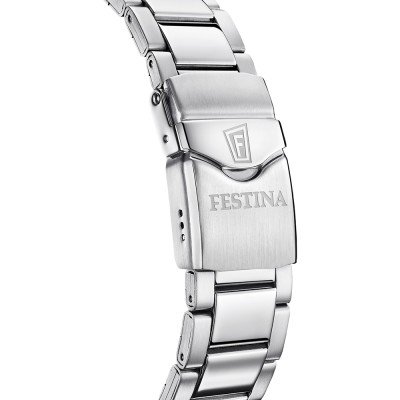 Diese Festina Uhr hat ein Edelstahl Gehäuse mit einem Durchmesser von 45 mm und ist mit einem Armband aus Edelstahl versehen. In der Uhr arbeitet ein Miyota Uhrwerk. Das Glas der Uhr besteht aus Sapphir - Glas.
