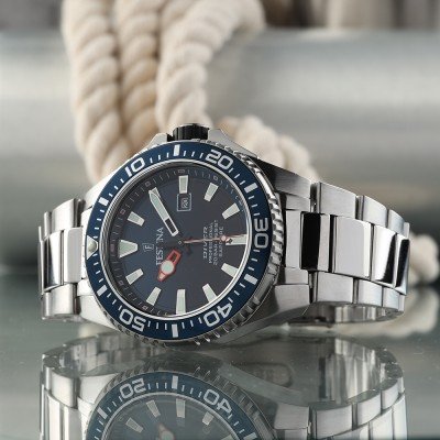 Die Uhr ist wasserdicht bis 20 ATM. Dies bedeutet, dass die Uhr zum Tauchen geeignet ist.. Die Uhr wird mit 2 Jahre Garantie geliefert.