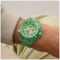Diese Guess Uhr hat ein Bio-Kunststoff Gehäuse mit einem Durchmesser von 48 mm und ist mit einem Armband aus Bio-Kunststoff versehen.