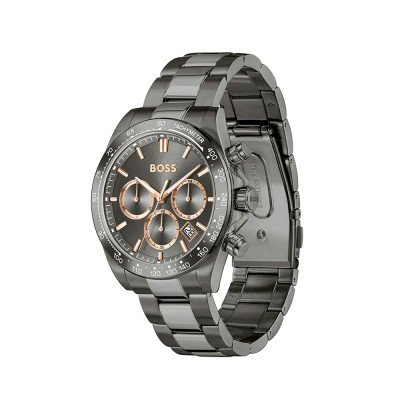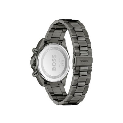 Diese Hugo Boss Uhr hat ein Edelstahl Gehäuse mit einem Durchmesser von 43 mm und ist mit einem Armband aus Edelstahl versehen. In der Uhr arbeitet ein Seiko Instruments Inc. Uhrwerk. Das Glas der Uhr besteht aus Mineral - Glas.