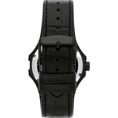Diese Maserati Uhr hat ein Edelstahl Gehäuse mit einem Durchmesser von 42 mm und ist mit einem Armband aus Leder versehen. In der Uhr arbeitet ein Seiko Instruments Inc. Uhrwerk. Das Glas der Uhr besteht aus Mineral - Glas.
