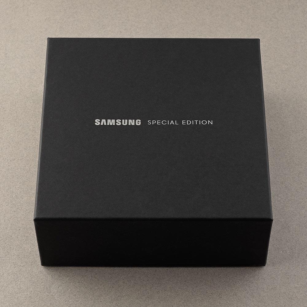 Diese Samsung Uhr hat ein Titan Gehäuse mit einem Durchmesser von 47 mm und ist mit einem Armband aus Edelstahl versehen.