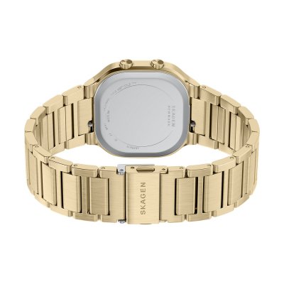 Diese Skagen Uhr hat ein Edelstahl Gehäuse mit einem Durchmesser von 38 mm und ist mit einem Armband aus Edelstahl versehen. In der Uhr arbeitet ein Bao Jie Uhrwerk. Das Glas der Uhr besteht aus Mineral - Glas.
