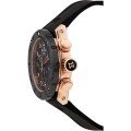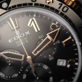 The Edox CO-1 Chronograph 10250-37R-NIR is a striking watch with its bold rose gold and black styling, stressing the number 1 on the dial. Under this luxurious appearance the 100 Bar diving watch is engineered for maximum performance. Built with a robust, rose gold PVD-coated stainless steel case and a ceramic bezel, this watch offers a distinct look and impressive scratch resistance. Its black dial with luminous markers ensure clarity even in the deep. Besides a chronograph function, the watch further features a helium escape valve, screw-down crown, and pushers secured against water damage. The comfortable rubber strap with a butterfly clasp keeps the watch stable on the wrist. The substantial weight and size of the watch add a tactile reminder of its premium status, making it a great choice for those seeking both adventure and prestige in a timepiece.