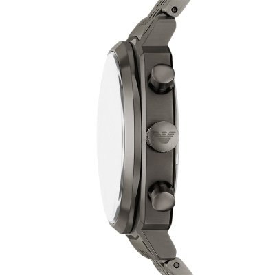 This Emporio Armani watch has a case made of stainless steel with a diameter of 40 mm and is fitted with a stainless steel band. Inside the case lies a Miyota movement and the watch features a Mineral crystal.