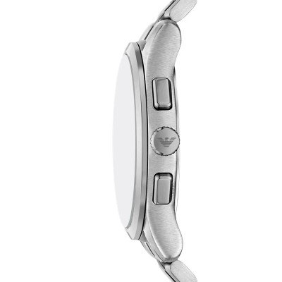 This Emporio Armani watch has a case made of stainless steel with a diameter of 41 mm and is fitted with a stainless steel band. Inside the case lies a Miyota movement and the watch features a Mineral crystal.