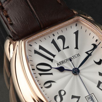 Este reloj marca Aerowatch tiene una caja de Inox con un diámetro de 37 mm y cuenta con una correa de piel. Dentro de la caja se encuentra un mecanismo de Sellita de alta calidad el cual esta protegido por un cristal Zafiro.