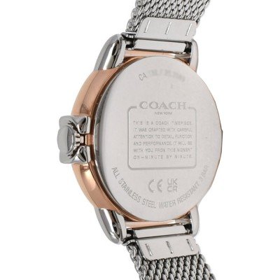 Este reloj marca Coach tiene una caja de Inox con un diámetro de 28 mm y cuenta con una correa de Inox. Dentro de la caja se encuentra un mecanismo de Seiko de alta calidad el cual esta protegido por un cristal Mineral.