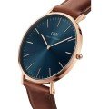 Este reloj marca Daniel Wellington tiene una caja de Inox con un diámetro de 40 mm y cuenta con una correa de piel. Dentro de la caja se encuentra un mecanismo de Miyota de alta calidad el cual esta protegido por un cristal Mineral.