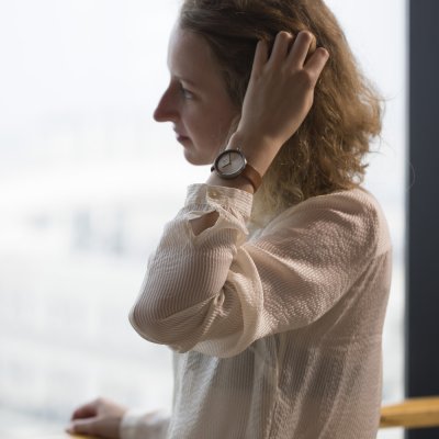 Zeer mooi designuurwerk. Het horloge is hoger dan ik gewoon ben. Je stoot er gemakkelijk ergens mee tegenaan.
