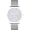 Esta correa de reloj de la :marca está hecha de acero inoxidable y se adjunta al reloj mediante pasadores de resorte. La banda tiene un ancho de 21 mm y se cierra mediante un cierre milanés. La correa tiene una montura recta, lo que significa que esta correa es adecuada para todos los relojes de la Lacoste con montura recta.