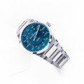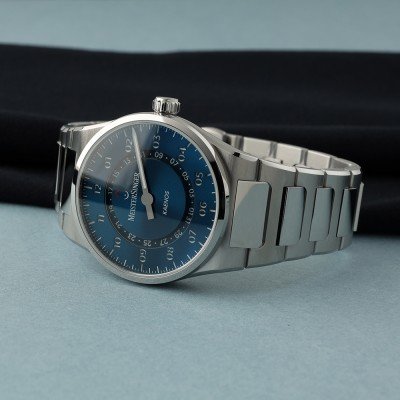 El nombre "Kaenos" de este nuevo reloj del universo Meistersinger deriva de la palabra griega "kainos", que significa "nuevo" o "fresco", y también hace referencia a la era Cenozoica, una era de renovación en el desarrollo del planeta Tierra. La esfera del reloj consta de dos capas, con los números y los índices perforados para revelar la capa inferior, recubierta de material luminoso. Debajo, hay otra capa que consiste en un disco de fecha abierto, cuya fecha puede leerse debajo de la posición de las 12 horas. Esta estructura de doble capa crea un efecto tridimensional a la vez que proporciona una gran claridad y una excelente legibilidad, tanto con sol como de noche. El fino acabado de rayos de sol crea un fascinante juego de colores en función de la luz. La aguja en forma de lápiz, de nuevo diseño, también está recubierta de material luminoso, lo que mejora aún más su legibilidad. El reloj funciona con un movimiento suizo Sellita SW200 -con una reserva de marcha de 38 horas- que puede admirarse a través del fondo de cristal transparente. Este extraordinario diseño le valió a Meistersinger el prestigioso premio iF Design Award 2025 por el Kaenos.