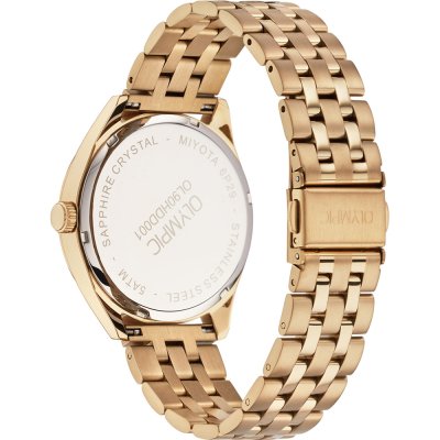 Este reloj marca Olympic tiene una caja de Inox con un diámetro de 40 mm y cuenta con una correa de Inox. Dentro de la caja se encuentra un mecanismo de Miyota de alta calidad el cual esta protegido por un cristal Zafiro.