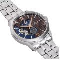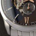 Este hermoso reloj no se llama “Esqueleto en Capas” sin razón. Tanto las subesferas del segundero pequeño como la de la reserva de energía, así como la parte con el “corazón abierto” en forma de Paisley, están empotradas con respecto a la esfera. La propia esfera tiene un brillo sutil y un patrón de espiga que recuerda al lujoso tejido de traje de tweed con forro de cupro. El contraste de texturas, la esfera en capas y los índices en relieve confieren profundidad al reloj, que se ve reforzada por la visión del bello movimiento F6F44. Este movimiento automático desarrollado internamente también puede ser cargado manualmente y tiene una reserva de energía de 50 horas. El acabado es, como estamos acostumbrados de Orient Star, excelente, con una pulsera de eslabones combinados cepillados-pulidos y cristal de zafiro antirreflectante.