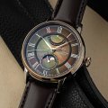 Este reloj marca Orient tiene una caja de Inox con un diámetro de 41 mm y cuenta con una correa de piel. Dentro de la caja se encuentra un mecanismo de Orient de alta calidad el cual esta protegido por un cristal Zafiro antirreflectante solitario.