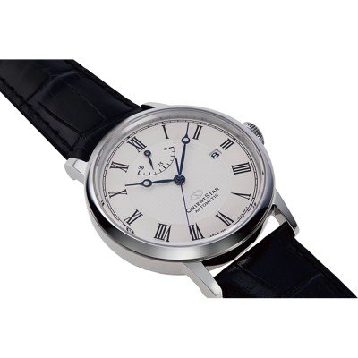 Este reloj marca Orient tiene una caja de Inox con un diámetro de 39 mm y cuenta con una correa de piel. Dentro de la caja se encuentra un mecanismo de Seiko Instruments Inc. de alta calidad el cual esta protegido por un cristal Mineral.