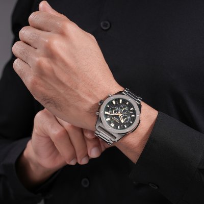 Este reloj marca Police tiene una caja de Inox con un diámetro de 43 mm y cuenta con una correa de Inox. Dentro de la caja se encuentra un mecanismo de Seiko Instruments Inc. de alta calidad el cual esta protegido por un cristal Mineral.