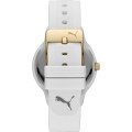 Este reloj marca Puma tiene una caja de Resina con un diámetro de 38 mm y cuenta con una correa de Goma. Dentro de la caja se encuentra un mecanismo de Seiko de alta calidad el cual esta protegido por un cristal Mineral.