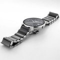 Este reloj marca Roamer tiene una caja de Inox con un diámetro de 41 mm y cuenta con una correa de Acero inoxidable y cerámica. Dentro de la caja se encuentra un mecanismo de Ronda de alta calidad el cual esta protegido por un cristal Zafiro.