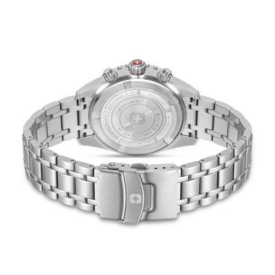 Este reloj marca Swiss Military Hanowa tiene una caja de Inox con un diámetro de 44 mm y cuenta con una correa de Inox. Dentro de la caja se encuentra un mecanismo de Ronda de alta calidad el cual esta protegido por un cristal Zafiro.