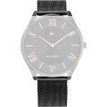 Esta correa de reloj de la :marca está hecha de acero inoxidable y se adjunta al reloj mediante pasadores de resorte. La banda tiene un ancho de 21 mm y se cierra mediante un cierre milanés. La correa tiene una montura recta, lo que significa que esta correa es adecuada para todos los relojes de la Tommy Hilfiger con montura recta.