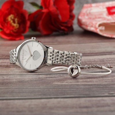 This Esprit watch has a case made of stainless steel with a diameter of 34 mm and is fitted with a stainless steel band. Inside the case lies a Seiko Instruments Inc. movement and the watch features a Mineral crystal.