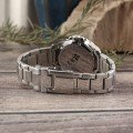 This Festina watch has a case made of stainless steel with a diameter of 34 mm and is fitted with a stainless steel band. Inside the case lies a Miyota movement and the watch features a Mineral crystal.
