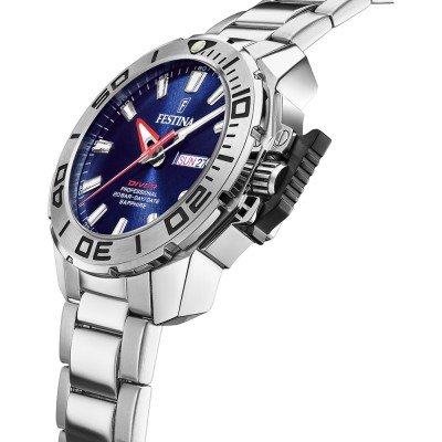 This Festina watch has a case made of stainless steel with a diameter of 46 mm and is fitted with a stainless steel band. Inside the case lies a Miyota movement and the watch features a Sapphire crystal.