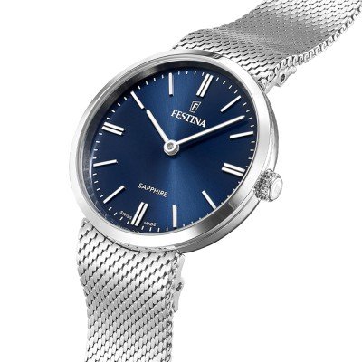 This Festina watch has a case made of stainless steel with a diameter of 29 mm and is fitted with a stainless steel band. Inside the case lies a Ronda movement and the watch features a Sapphire crystal.