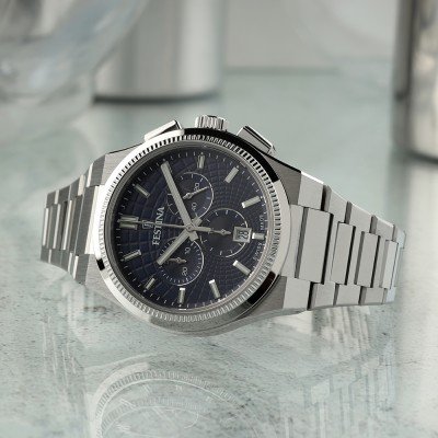 This Festina watch has a case made of stainless steel with a diameter of 42.5 mm and is fitted with a stainless steel band. Inside the case lies a Ronda movement and the watch features a Sapphire crystal.